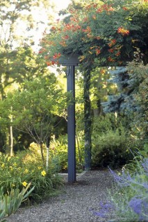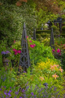 Gardens are made up of many different details that we take in when we look at them. Our eyes see colour, texture, shape and form, and height in a garden gives interest and variety. Height attracts the eye and can focus our attention away from ground level which means that we can see beyond the garden. So a distant view, the skyscape etc can all become part of the visual feast that a garden can give you.
